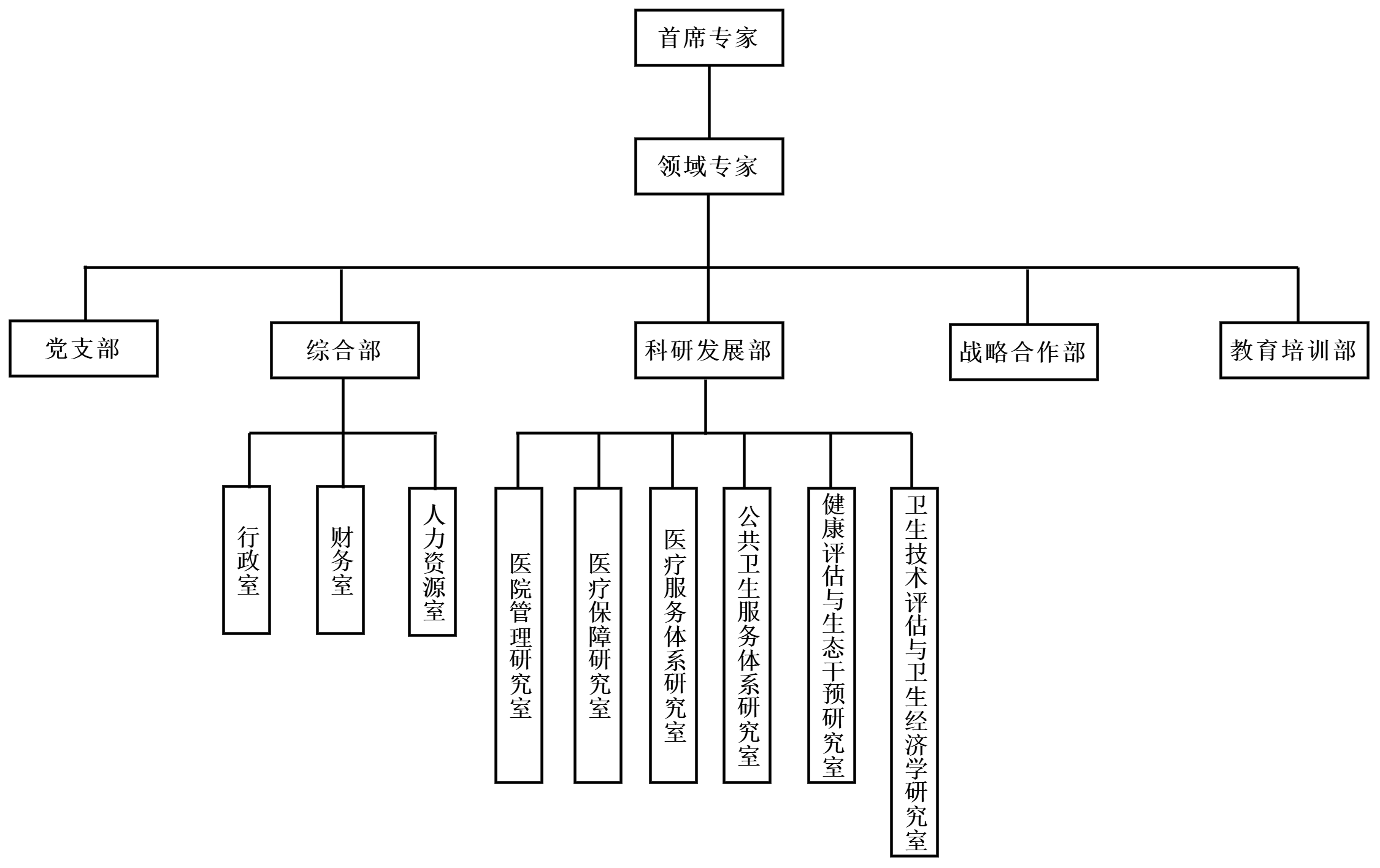 研究院组织结构由理事会和行政管理两部分组成,在理事会的领导下开展工作,理事团队由全国各医学院校专家、卫生、医保领域热心人士组成。研究院将搭建健康经济可持续发展的产、学、研平台。主要架构为: